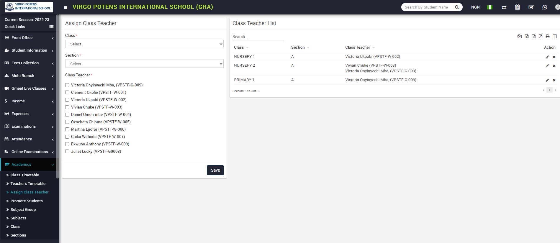 Academics module workflow: First we will add Section and Class then we will assign a Teacher to the class then we will add Subjects, Subject Groups. Furthermore we will create a Class Timetable and a Teacher Timetable so the student can view their class timetable. Here we can also promote students for the next session